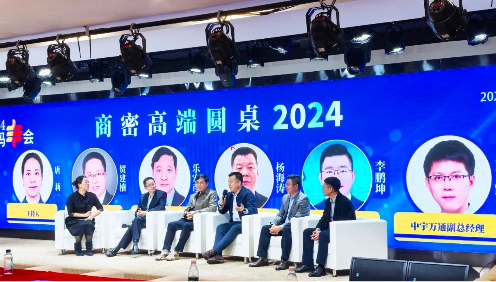 商密高端圆桌对话环节,k8凯发信息北京公司总裁杨海涛与行业大咖就商用密码如何更好地在第三次科技革命的大背景下,同人工智能、云计算等新兴科技领域进行融合创新等话题进行深入探讨。